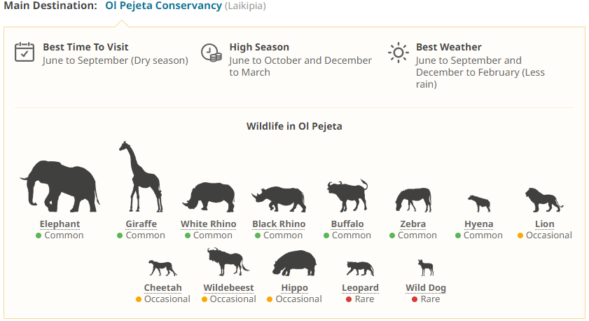 On this tour, you will see Mt Kenya and Ol Pejeta. Mt Kenya is the second-highest mountain after Mt Kilimanjaro. Ol Pejeta is the largest black rhino sanctuary in East Africa, and home to three of the world’s last remaining northern white rhinos. It is the only place in Kenya to see chimpanzees, in a Sanctuary established to rehabilitate animals rescued from the black market.