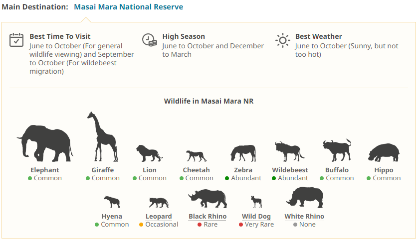 In just 5 days, you’ll see a large savannah overflowing with the Big Five, lakes alive with colorful birds, and woods and parks teeming with rhinos, leopards, giraffes, and other animals. This safari is a celebration of Africa’s diversity, taking you from the cold, blue waters of Lakes Naivasha and Nakuru, which are home to flamingos and hippos, to the Masai Mara plains, which are home to lions and wildebeests. Our African tour showcases the best of Kenya’s wildlife and our beautiful people.