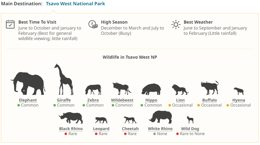 All of the Big Five call the Masai Mara home. Lions are easily spotted at the Mara. At Lake Naivasha, there is plenty of wildlife such as hippos and crocodiles, as well as over four hundred different species of birds, including the cormorant, pelican and fish eagle. Amboseli National Park offers one of the best African wildlife adventure experiences when it comes to the wide range of wildlife species. You will also have a spectacular view of Mount Kilimanjaro. We conclude our safari with 2 Tsavo.